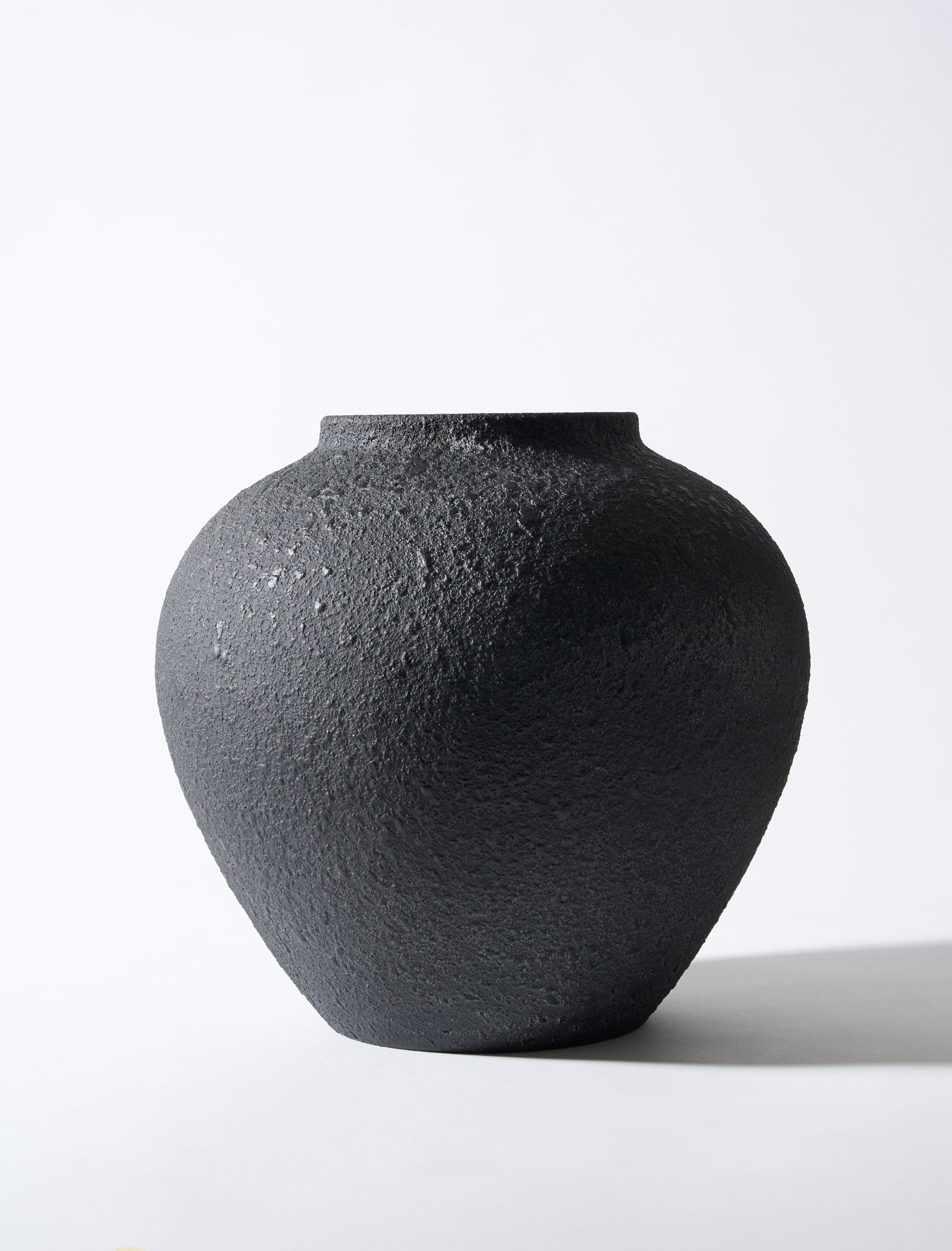 This stunning large iron vase now comes in a bold black finish. With a rich, deep tone and a subtly textured surface, this version retains the generous curves and substantial presence that define the piece. The dark colourway elevates its sculptural form, offering a sophisticated contrast that makes it a true statement piece in any modern interior. Perfect for adding drama and depth to minimalist or contemporary decor settings.