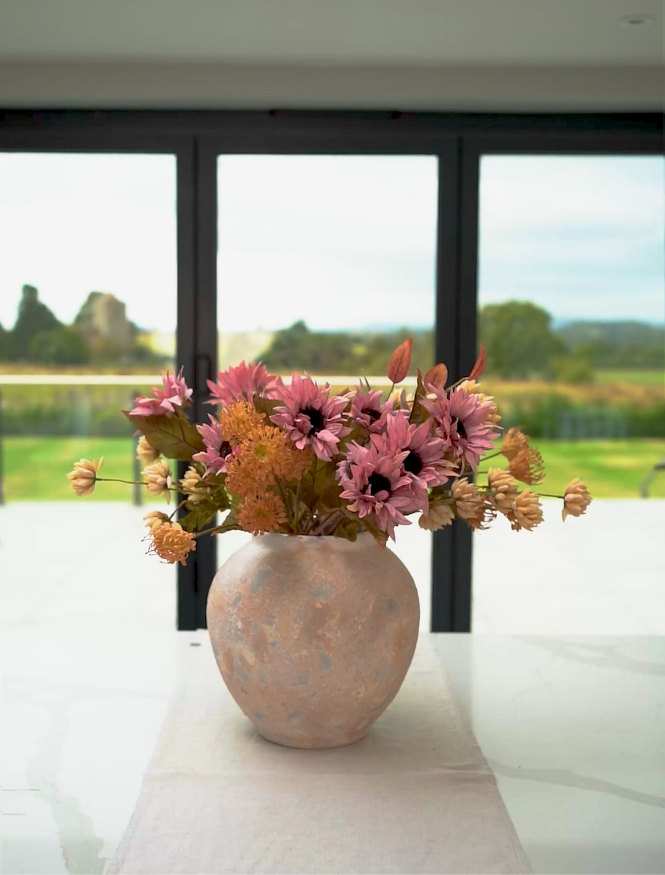 Faux Autumn Arrangement - Pink & Beige
