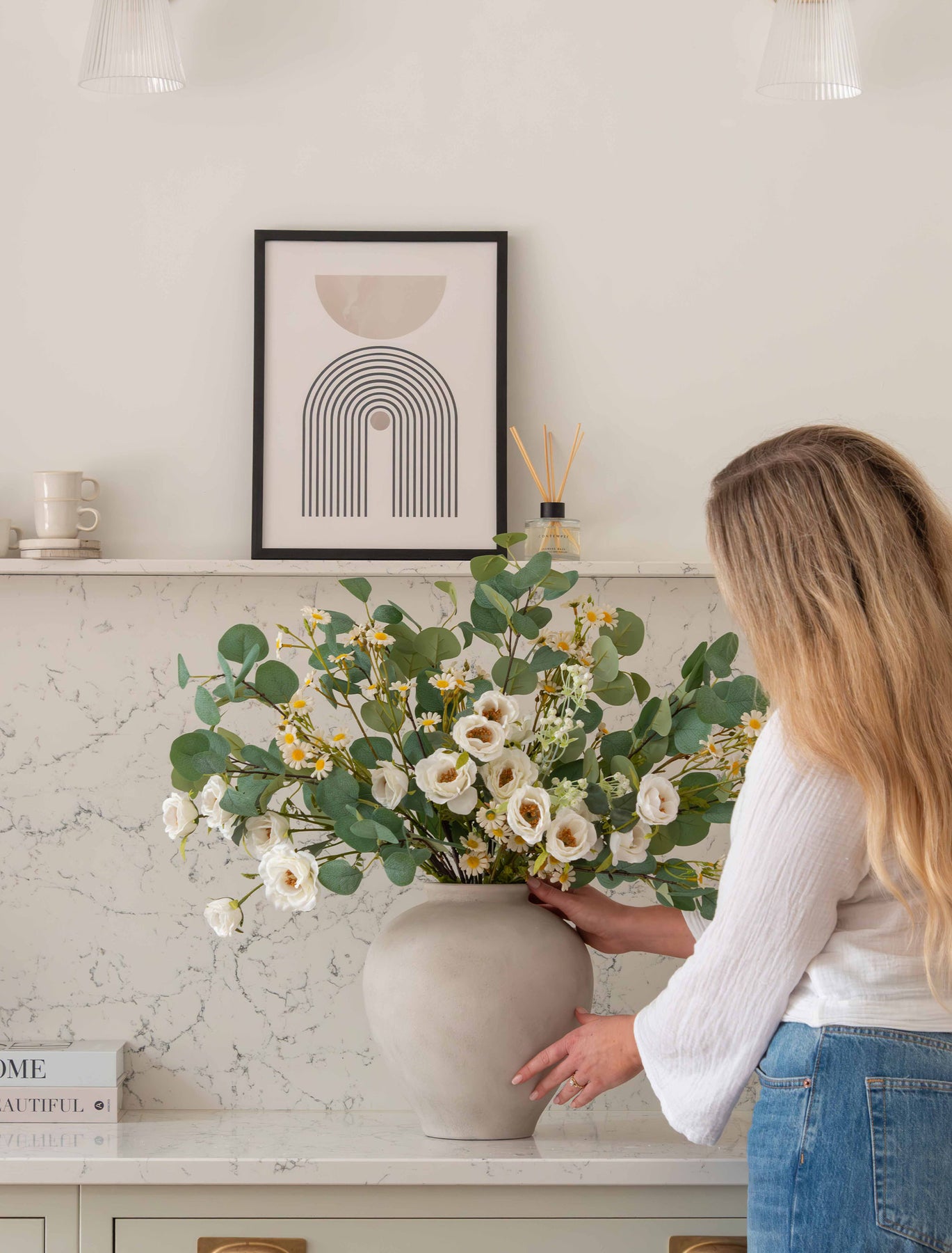Faux Arrangement - Eucalyptus & White Chamomile