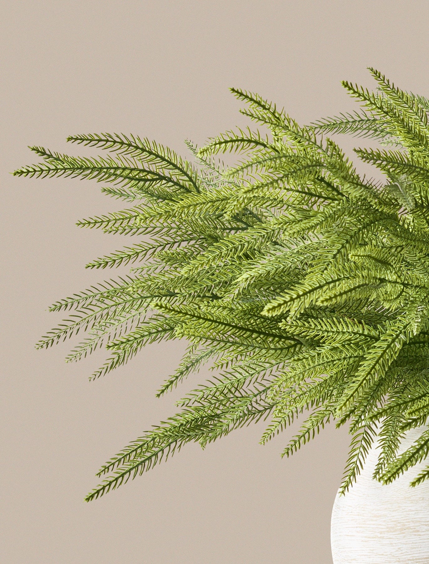 Bring the quiet beauty of winter evergreens into your home with our Norfolk Pine Stems, a timeless faux arrangement inspired by the soft, layered texture of real pine. Each stem features finely detailed needles, natural colour variation, and flexible wired branches—capturing the gentle movement and fullness of fresh-cut greenery without the shedding or upkeep.
