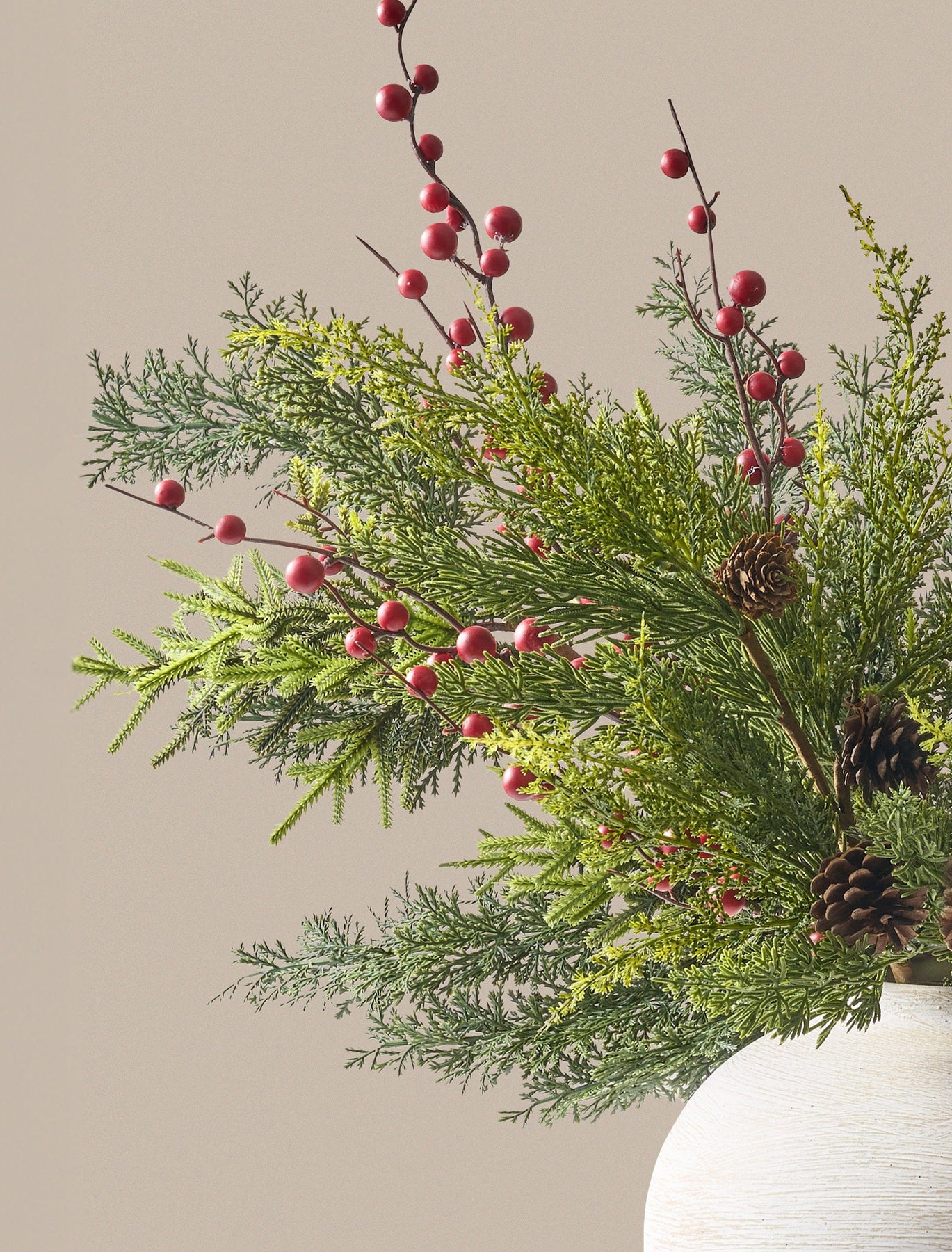 Transport your mind to a crisp winters walk in the countryside with this beautiful Winter Fern and Red Berry arrangement. Delicate red berries are nestled amongst luscious green foliage for a simple yet sophisticated bouquet, perfect for the winter season.