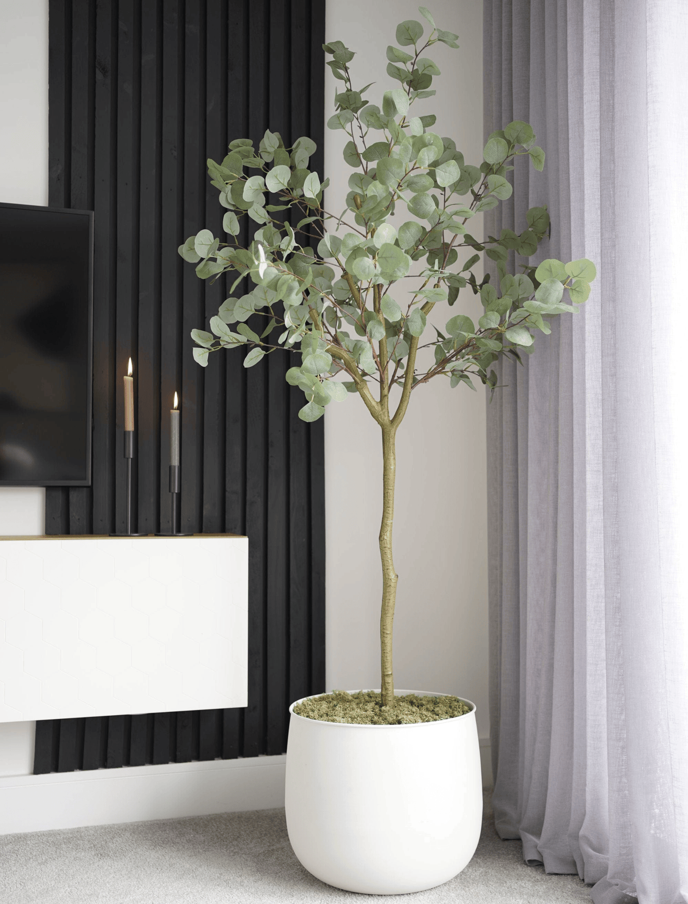 Our Faux Eucalyptus Tree is the perfect statement piece for your home, elevating any entryway, kitchen or living space. These artificial trees look just like the real thing, and are the perfect way to inject a laid-back, mediterranean feel to your home. This is an ideal, on-trend statement piece for any minimalist home.
